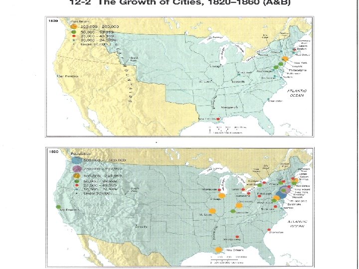 Railroads • All-terrain, all-weather transportation • 1 st railroads were horsedrawn. • Faster, cheaper to build, and able to reach more places, but costly to maintain. • By 1860, 75% found in North Ø Transportation Revolution encouraged growth of cities. First with steamboats and river cities, then with canals and cities near Great Lakes. Ø What is the growth of cities called?