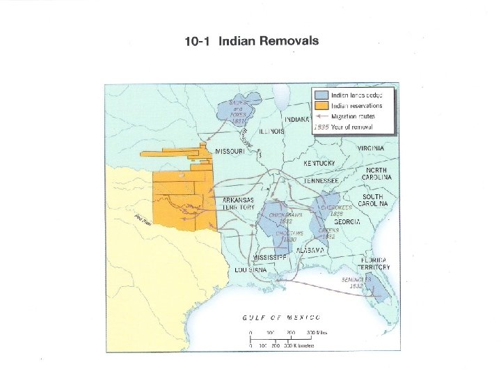 Indian Removal • Indian Removal Act 1830 1. Granted president funds and authority to remove Native Americans by force if necessary 2. Authorized president to give Native Americans land in Louisiana Territory in exchange for land taken in the east. (traded cultivated land for wild prairie land in Indiana Territory)