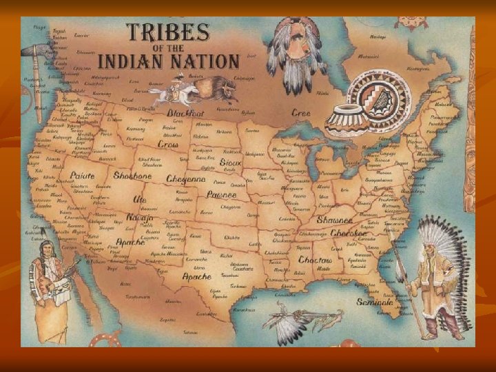 Removal of the Native Americans n Diverse population n n New Mexico and Arizona: Pueblo farmed in permanent settlements Navajo and Apache of the SW were nomadic hunter-gatherers who had to adapt Pacific Northwest: Chinook developed communities based on hunting and fishing 2/3 of tribes were nomadic, living on the Great Plains and hunting buffalo (Sioux, Blackfoot, Cheyenne, Crow, Comanche)