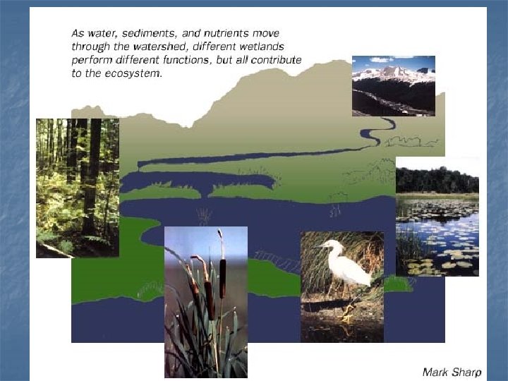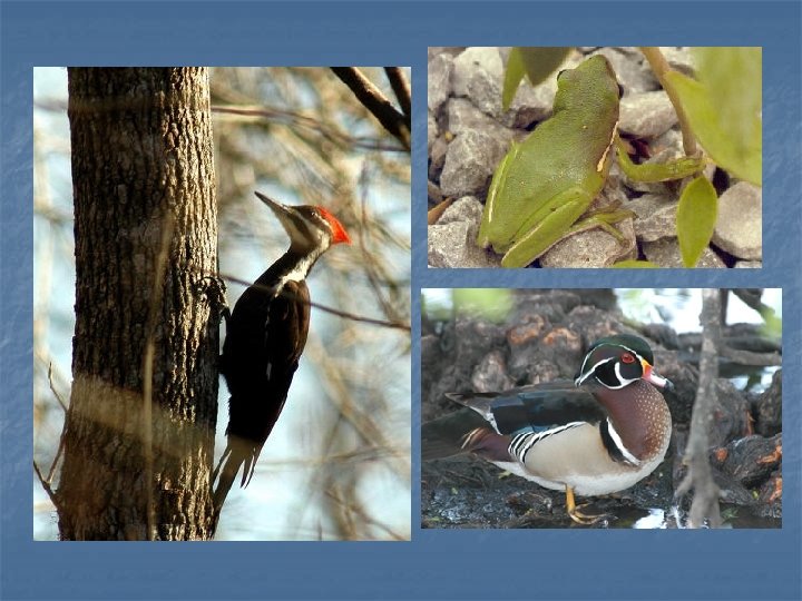 Why are Wetlands Important to Animals? 1. 2. 3. 4. 5. Wetlands are among the most productive ecosystems in the world, comparable to rain forests and coral reefs. They provide great volumes of food that attract many animal species. Form the base of the food web and feed many species of fish, amphibians, shellfish, and insects. Many species of birds and mammals rely on wetlands for food, water, and shelter, especially during migration and breeding. Wetlands retain excess nutrients and some pollutants, and reduce sediment that would clog waterways and affect fish and amphibian egg development.