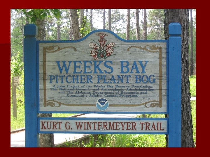 Places To Visit Weeks Bay Estuary- Pitcher Plant Bog Baldwin County http: //www. weeksbay. org/index. htm n 5 Rivers Delta Center- Delta Boat Trips- Causeway http: //www. outdooralabama. com/outdooradventures/5 rivers/ n Wildland Adventures- Tours of Upper Delta and Swamps http: //www. wild-land. com n