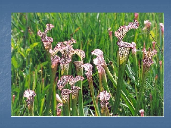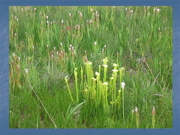 Bogs 1. A bog is a wetland type that accumulates a deposit of dead plant material. 2. Pitcher plants are also found in bogs.