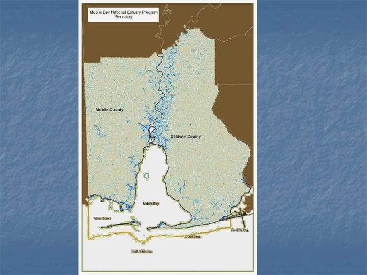ESTUARIES 1. 2. 3. 4. 5. Fresh water from the Mobile-Tensaw River Delta is mixed with saltwater from the Gulf of Mexico. Our Mobile Bay is an estuary. Estuaries are partially enclosed bodies of water where freshwater meets salty ocean water. Brackish water is a mix of fresh and salt water. Estuarine environments are among the most productive on earth.
