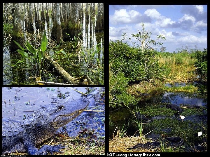 Wetlands • Characteristic hydric soil and hydrophytic vegetation as signs of frequent surface saturation or inundation. • Many types of wetlands: (Dodds, 2002; Table 4. 3) – – – – Salt-marshes and (temperate, seawater influence) Mangrove forests (tropical, seawater influence) Tidal & non-tidal freshwater marshes Deepwater (cypress) swamps Northern (bogs & tundra) wetlands Riparian forests/wetlands Man-made (rice paddies & bioremediation) • Function as nutrient and sediment traps; slow runoff and facilitate recharge; most are highly productive.