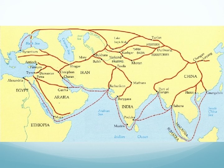 Trade Networks Silk Road Indian Ocean Trade Saharan Trade Location China to Rome Red Sea to Africa to India/southwester Mediterranean n China What is traded? Silk (duh), fruits/grains/spice s, ideas (Christianity and Buddhism) Spices, pottery, ivory Salt, gold Traders Pastoral nomads on horses (using stirrups) Ships (using the lateen sail), harnessing monsoon winds Caravans on camels