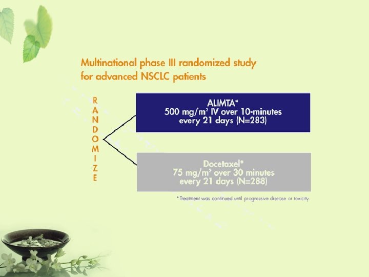 Basic Principle on Clinical Trial Design • Objective – To obtain an unbiased and reliable assessment of given regimen response, independent of any known or unknown prognostic factors. • Principle Allocation at random Representative Blinding Reliability Control group Reproducibility