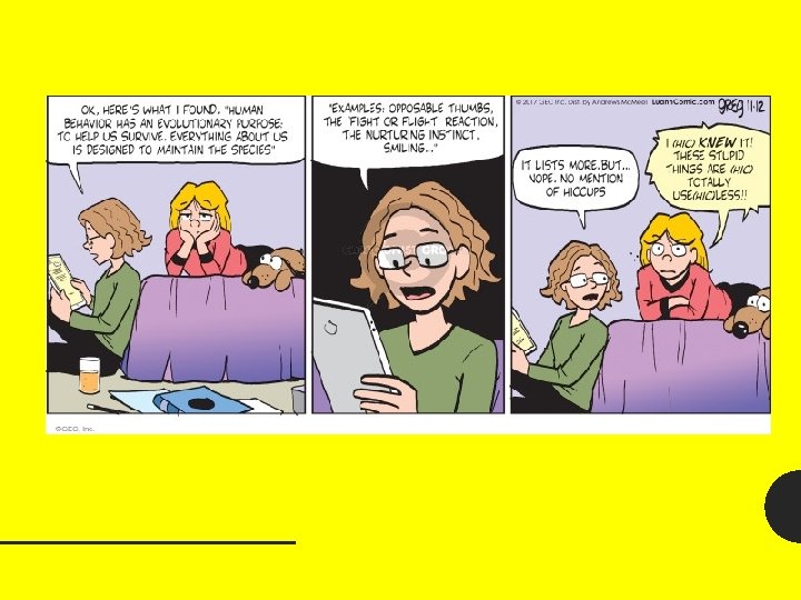 WHAT ARE COMIC STRIPS HISTORY OF COMIC STRIPS Slides: 17 Download presentation WHAT ARE COMIC STRIPS? HISTORY OF COMIC STRIPS https: //www. youtube. com/watch? v=b. BOHr WYh. FNI VOCABULARY TERMS 1. 2. 3. 4. 5. 6. 7. 8. 9. COMIC STRIP PANELS SEQUENCE GUTTERS SPEECH BUBBLES SCREAM BUBBLES COLORED BUBBLES SCREAM BUBBLES THOUGHT BUBBLES A COMIC STRIP IS: A GROUP OF PICTURES THAT TELLS A SEQUENCED STORY IN A FEW PANELS. A comic strip is no different from writing a short story. It still needs a beginning, middle and ending. BEGINNING A comic strip is no different from writing a short story. It still needs a beginning, middle and ending. MIDDLE A comic strip is no different from writing a short story. It still needs a beginning, middle and ending. ENDING A comic strip is no different from writing a short story. It still needs a beginning, middle and ending. COMIC STRIPS- A sequence of PANELS that tell a humorous story. PANELS- A box that holds images and words in a comic strip. SEQUENCE- is a connected series of events shown in PANELS and separated by GUTTERS. GUTTER- The little strip of space in between each panel. FILL-IN THE MISSING WORDS IN THE CARTOON STRIPS. MAKE MR. B LAUGH!!! FILL-IN THE MISSING WORDS IN THE CARTOON STRIPS. MAKE MR. B LAUGH!!! FILL-IN THE MISSING WORDS IN THE CARTOON STRIPS. MAKE MR. B LAUGH!!! FILL-IN THE MISSING WORDS IN THE CARTOON STRIPS. MAKE MR. B LAUGH!!!