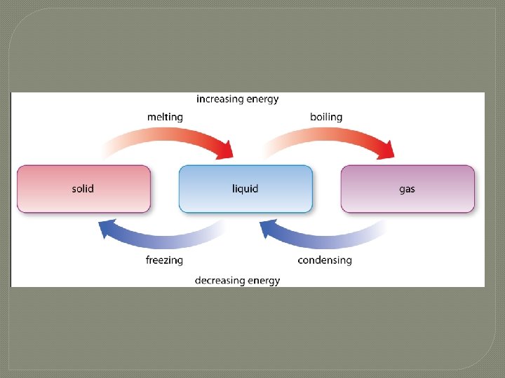 What happens when substances change state? • When substances lose or gain energy, one of two things can happen to the substance: • its temperature can change • or its state can change.