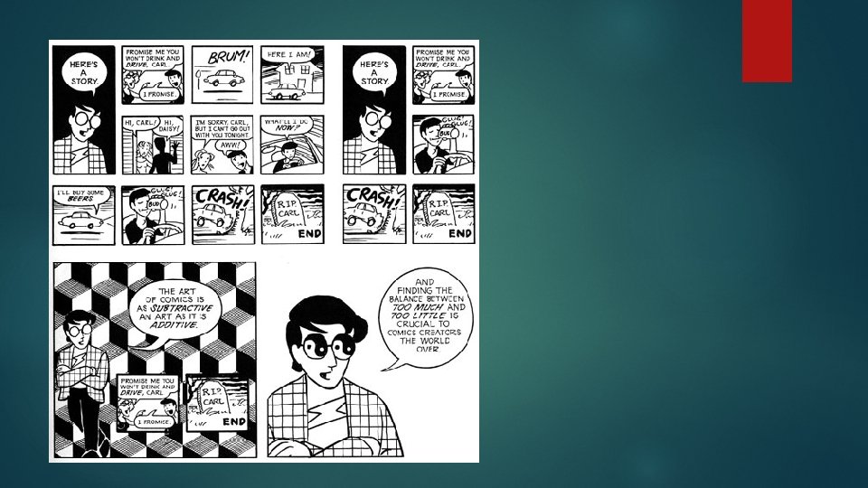 Subject-to-subject While sticking with a single idea, these panels move the reader from one subject to the next subject, often progressing the storyline. Mc. Cloud reminds us to “note the degree of reader involvement necessary to render these transitions meaningful. ”
