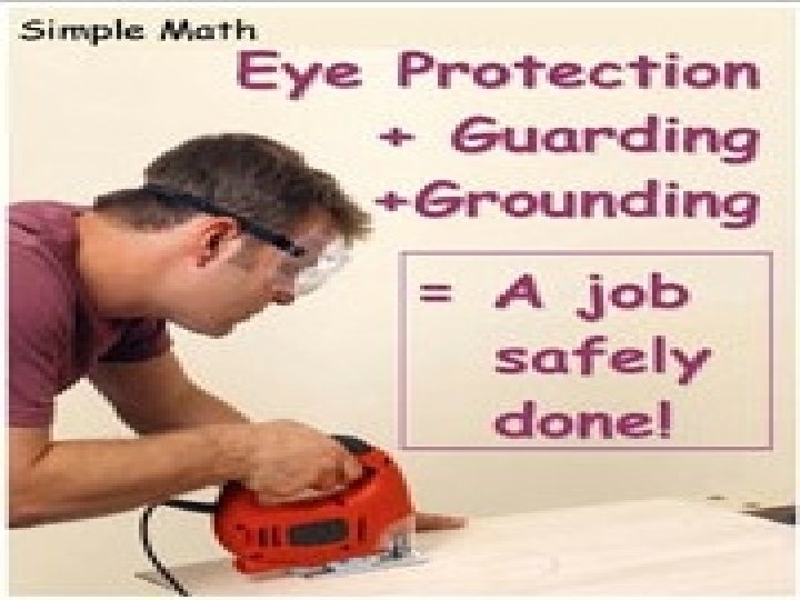 Power Tools Safety Tips Problems: · · · Inadequate instructions Use of improperly grounded, non-double insulated tools Protective guards were defective, or removed Dull, cutting edges of blades and bits Hang-up of power cord twist plugs on ladder rungs Non-secure operator position Solutions: · · · Proper training in power tool use Preventive maintenance on power tools Inspections and defective tool reports Shorten power cord to prevent hang-ups If you are performing elevated work, use safety belts