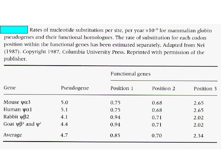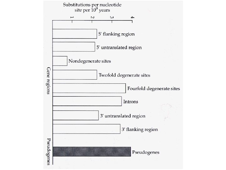 Percent divergence between cow and goat b- and g-globin genes and between cow and goat b-globin pseudogenes. Region K 5’ flanking 5. 3+1. 2 5’ untranslated 4. 0+2. 0 4 -fold degenerate 8. 6+2. 5 Introns 8. 1+0. 7 3’ flanking region 8. 8+2. 2 3’ untranslated 8. 0+1. 5 Pseudogenes 9. 1+0. 9