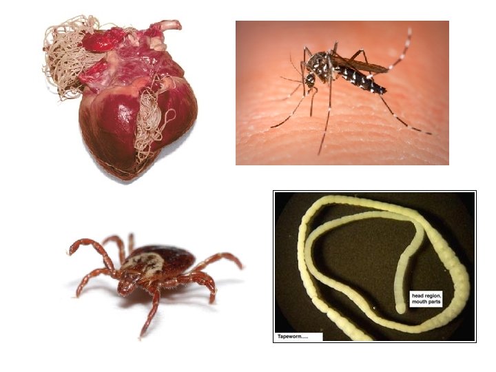 What are parasites? • A parasite is an organism that feeds on another individual, known as the host. They either live on or in their host’s body. • Parasites have evolved to efficiently feed off of the host’s body, so they are usually very specialized. Tapeworms are so specialized for a parasitic lifestyle that they do not even have a digestive system. They live in the small intestine of their host and absorb nutrients directly through their skin. • Infectious disease may also be caused by animal parasites, which may take up residence in the intestines, bloodstream, or tissues.