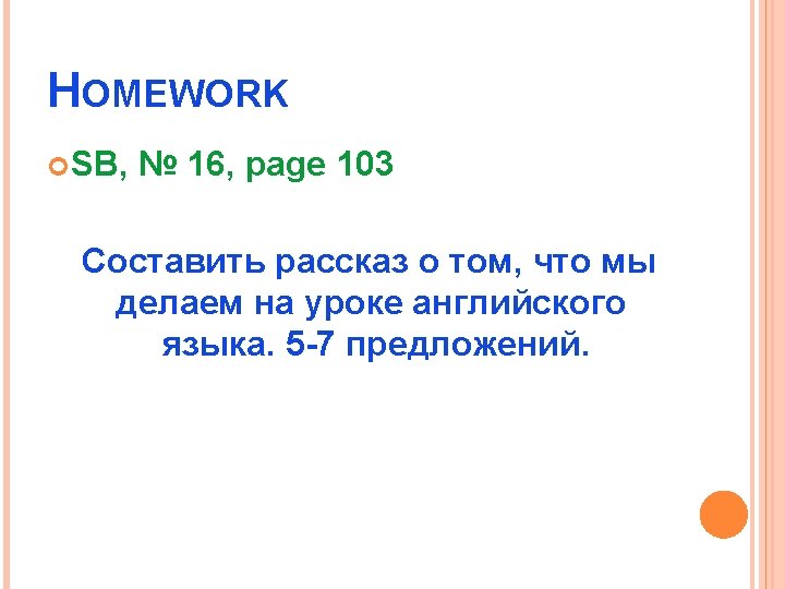 WE USUALLY … IN THEENGLISH LESSON learn speak sing answer translate watch write read songs the questions English films from English into Russian new words funny stories English poems by heart