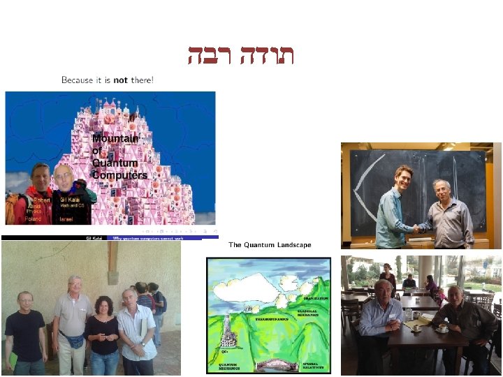 Other connections A principle of no quantum fault-tolerance� may shed light on familiar issues and controversies in quantum physics, and may enable to capture into the scientific grounds some foundation uncharted territories. Speculative connection: The emergence of locality; the emergence of specetime; the firewall blackhole paradox; The measurement problem; QM and free will; …