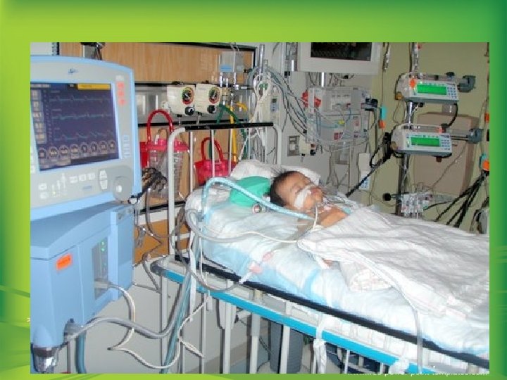 Respiratory: Interventions and Outcomes Nursing Interventions § § § Monitor respiratory status; rate and depth of breaths; chest expansion; adventitious breath sounds; auscultate breath sounds qh. Monitor LOC Maintain O 2 Sat >90% Record I&O qh to monitor fluid balance – report signs of fluid overload or dehydration Monitor effectiveness of PEEP, FIO 2, and VT Desired Outcome Patient will maintain adequate gas exchange as evidenced by clear breath sounds, RR WNL for age (30 -60 bpm), oxygen saturations >90% and absence of retractions, and use of accessory muscles