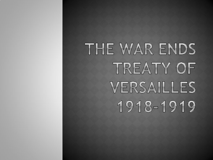 War ends on Nov. 11 th, 1918 European Allies were furious with Germany after WWI and wanted a treaty that punished Germany and made them pay for the damage of the war President Wilson thought that the treaty should try to lay the groundwork for world peace (Wilson’s Fourteen Points). . . So that WWI would be the “war to end all wars”