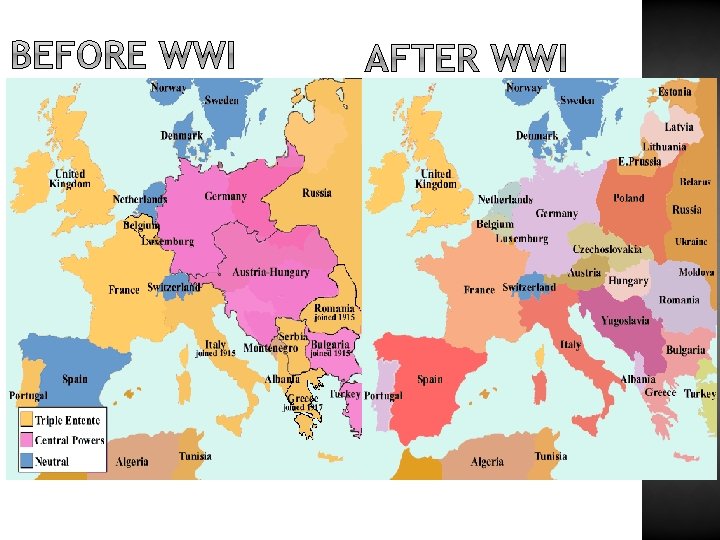 Blame Germany (option 1) Cost £ 6, 600, 000/$34. 1 billion (option 2) German military Most harsh (option 1) Colonies France & G. B. split them (option 2) Rhineland Allies take control (option 1) Alsace Lorraine to France (option 1) Saar to France for 15 years (option 1) Poland Independence (option 3) Danzig Free city (option 3) Finland, etc. Independence (option 1) Czechoslovakia Independence (option 2)