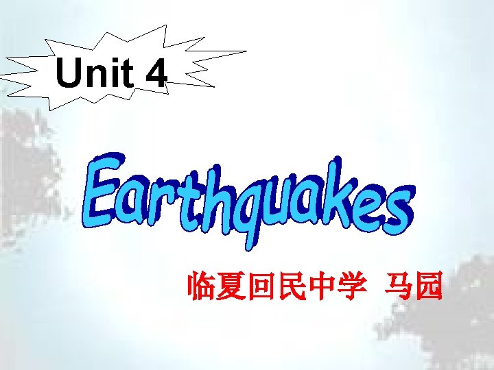 Quiz: How much do you know about earthquakes? 1. What is the main reason of an earthquake? 2. Which country does earthquake always happen? 3. Can you name some big earthquakes happening in China?