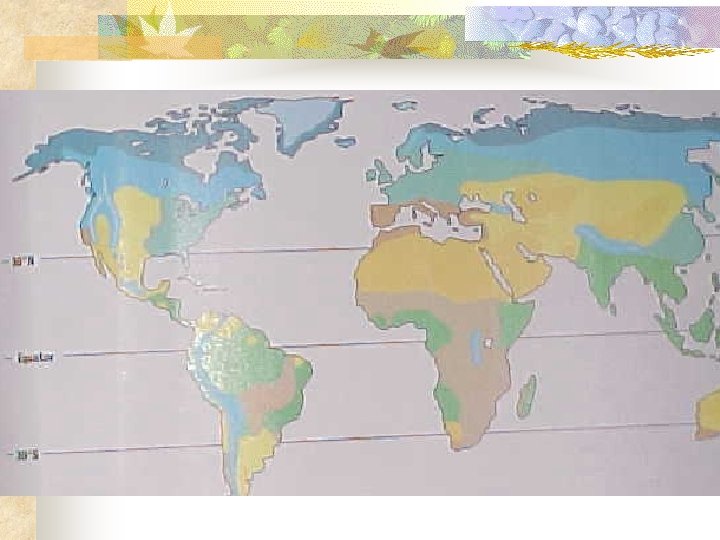 • Temperature is high and relatively constant through the years. • Climates with rainfall distributed through the year are found in the tropical rain forest of South and Central America. • Most chemical elements(nutrients) are held in the living vegetation.