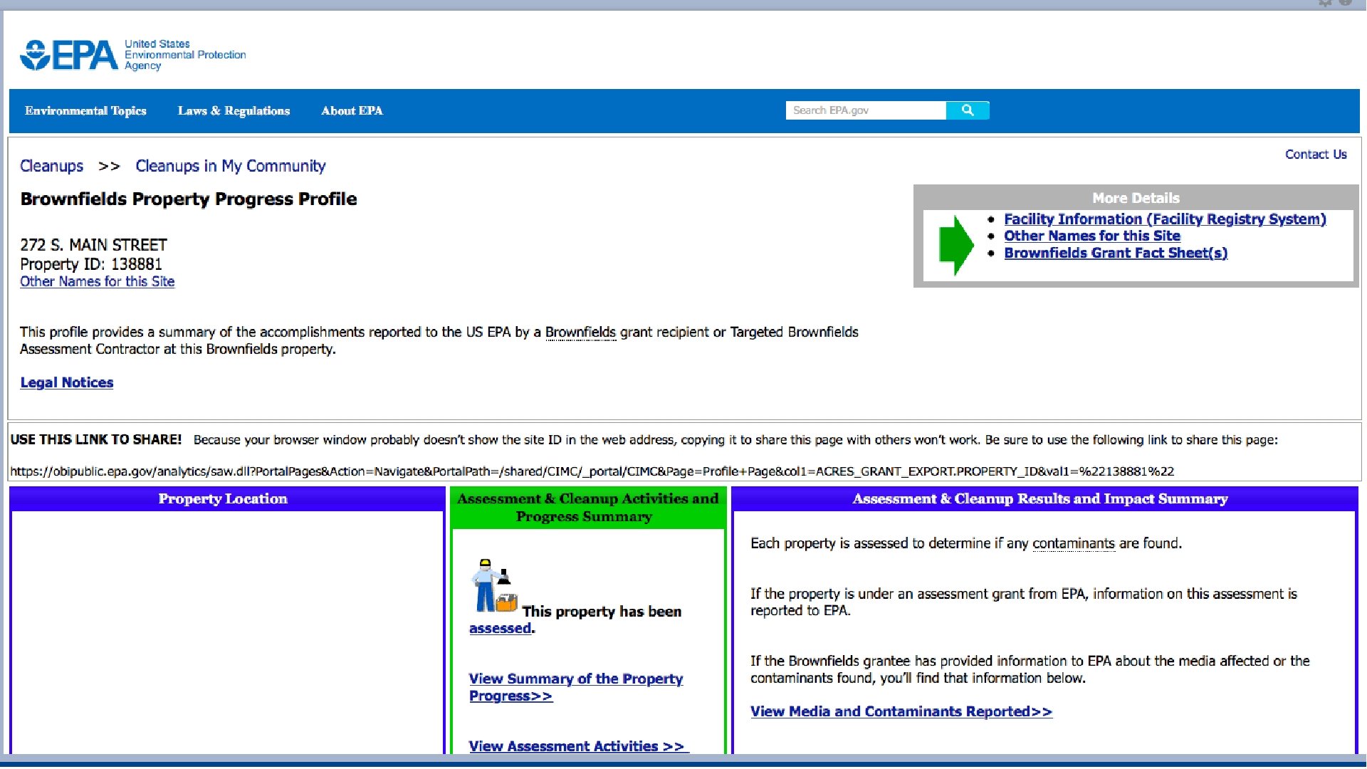 Redevelopment of Brownfields Locate a brownfield using https: //www. epa. gov/cleanups-my-community#map website. Once you have located a brownfield in any state of your choosing complete the chart below. Describe why this area is classified as a brownfield. Location of Brownfield: Explain what has been done to clean up the brownfield. Photo of the Brownfield What is the brownfield used for currently or will be used for in the future?