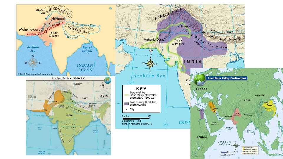 Indus River Valley (circa 2500 BC) Indian Subcontinent • India, Pakistan, Bangladesh…. . • Rivers, Plains & Mountains • Indus River – unpredictable flooding/ changed course • Ganges River • Indo-Gangetic Plains • Hindu Kush • Karakorum • Himalayas • Decca Plateau • Thar Desert • Monsoons • seasonal winds • precipitation? drought? • How similar/different to Mesopotamia & Egypt?