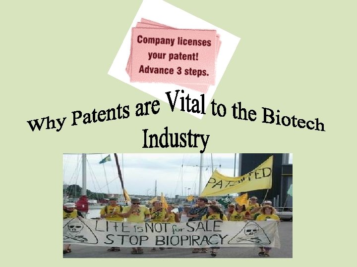 Patents Are Needed to Recoup Biotech Development Costs • Patents grant a limited monopoly – Assures first-to-market status – Sales are only limited by size of the patient population and supply – Greater control over pricing – Revenue potential is generally secure for the life of the patent • US Patent life is 20 years from earliest filing date • Long development time doesn’t leave much patent life • Branded drugs lose 80% of market share within 6 to 8 weeks of patent expiration • Strong patent portfolio makes company a more attractive investment/buyout opportunity