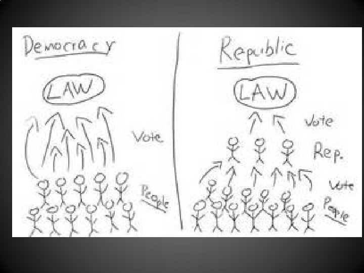 What is a Republic? • It is a system in which citizens elect leaders to represent them. – Ex: The United States is a Republic because citizens elect members of congress (Senate and House of Representatives) to pass legislation in the federal government. • Does this make the US a Parliamentary Democracy?