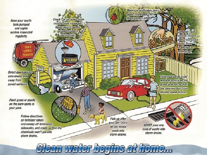 Your yard flows to your creek. . . Most pollutants that are on the land (car fluids, yard chemicals, trash and debris) come from us. These pollutants are picked up by rainwater and carried to our creeks.