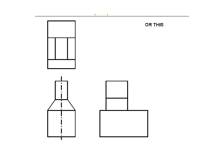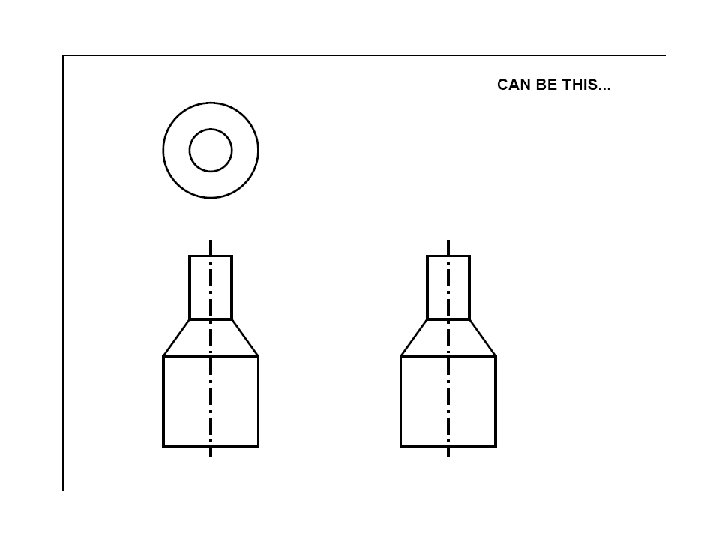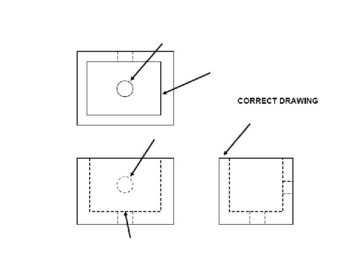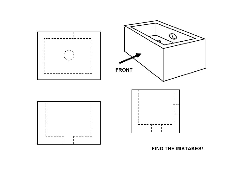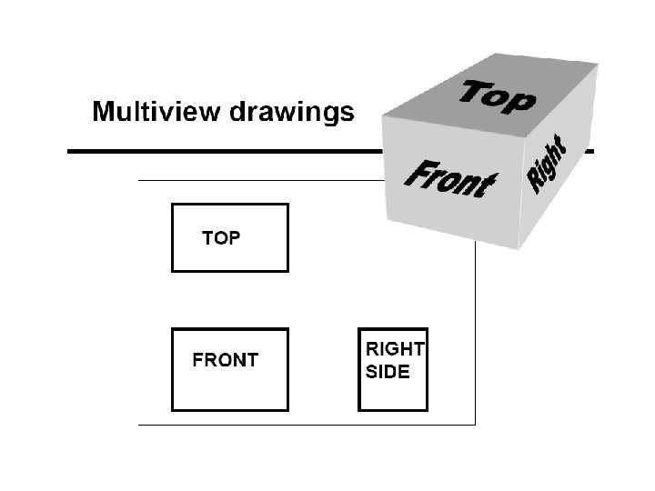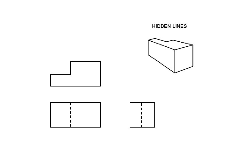 Top view (sometimes called Plan View) Right Side view Dashed lines are hidden objects Front View