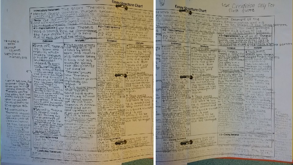 STEP 1: BRAINSTORMING AND ESSAY OUTLINE (GRAPHIC ORGANIZER) The first part of your homework for tonight is to brainstorm heroic character traits that Theseus embodies. E. g. Theseus is determined, sincere and brave, which are all traits of someone who is heroic. The second part of your homework for tonight is to brainstorm a minimum of 3 heroic stages (birth/origin, helpers, threshold, etc. ) that PROVE Theseus to be heroic. Consider the heroic stages that will offer you the most evidence for your argument. Keep in mind that you goal is not to summarize what happens to Theseus, rather PROVE HOW HIS STORY FOLLOWS THE HEROIC QUEST MOTIF.