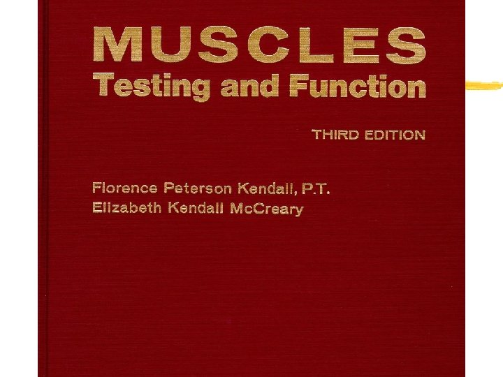 z. Kendall and Mc. Creary y. Muscles, testing and function y 1949 y. Only in third edition