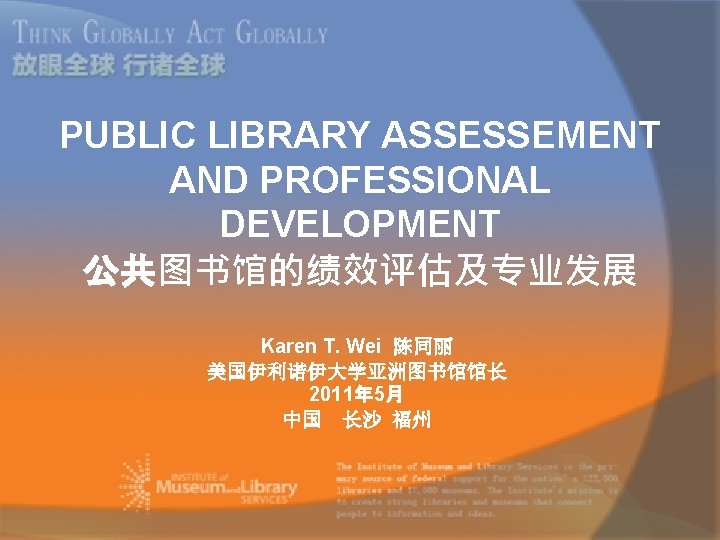 Thank You! 谢谢! 欢迎提问 Karen T. Wei 陈同丽 Head, Asian Library Professor of Library Administration University of Illinois at Urbana-Champaign 伊利诺伊大学亚洲馆馆长, 教授 kwei@illinois. edu