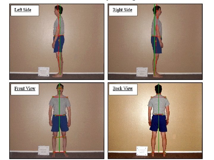 Standard Posture An evaluation of postural faults needs a standard by which individuals postures can be judged. n The standing position may be regarded as a reference alignment of a subject from 4 view: n Front n Back n Right side n Left side n