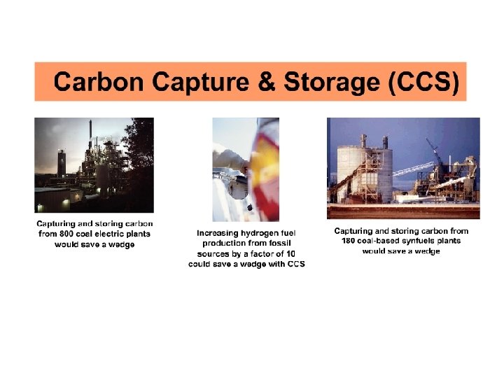 Stabilization Wedges • 15 ways to cut carbon • Efficiency and Conservation • Fossil Fuel Based Strategies • Nuclear Energy • Renewables and Biostorage