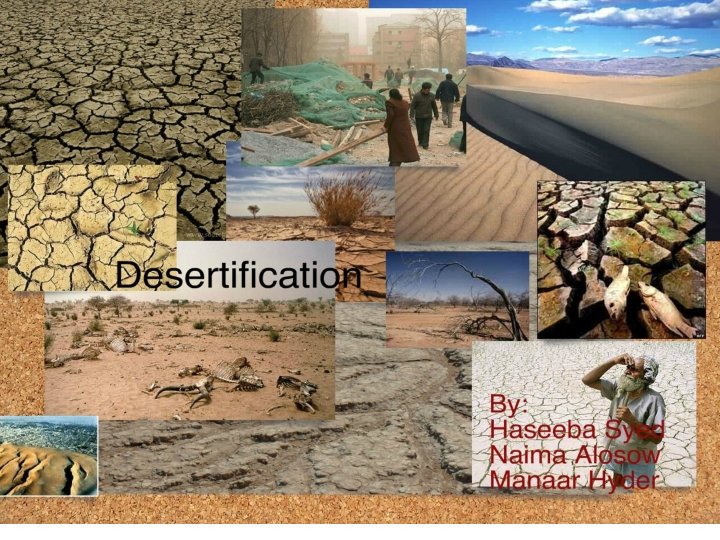 How does it occur? • Desertification does not occur in linear, easily map able patterns. Deserts advance erratically, forming patches on their borders. Areas far from natural deserts can degrade quickly to barren soil, rock, or sand through poor land management. The presence of a nearby desert has no direct relationship to desertification.