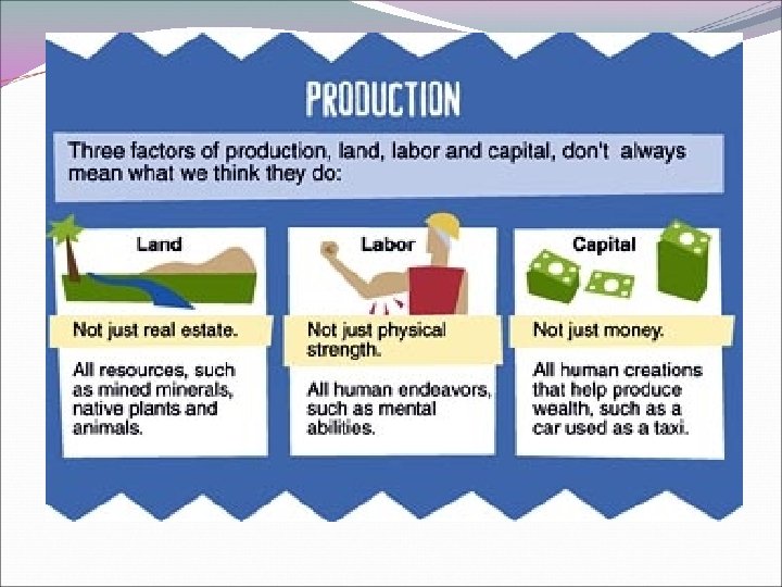 Factors of Production Entrepreneur: a business innovator who sees the opportunity to make a profit from a new product, new process, or unexploited raw material and then brings together the land, labor, and capital to exploit the opportunity. Take the risk and reap the benefits.