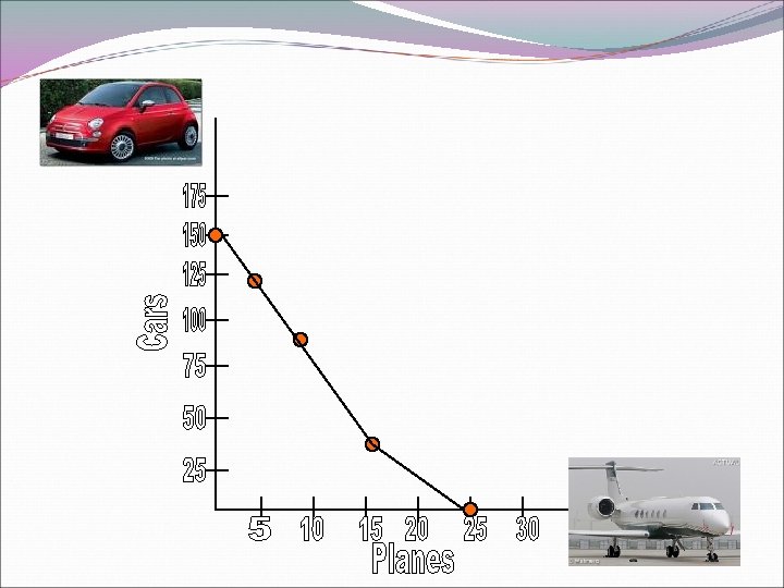 List resources scarce in this situation? About how many cars can be produced when five planes are made? About how many planes can be produced when 36 cars are produced? What is the opportunity cost of producing 150 cars? What is the opportunity cost of producing 5 planes?