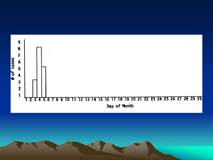 An example of the use of time, place, and person to describe disease characteristics: • Gathering evidence • Ordering hypotheses by probability • Observing place, time (trend), and person characteristics
