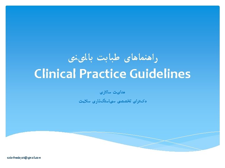Guidelines Purpose “To make explicit recommendations with a definite intent to influence what physicians do” salarihedayat@gmail. com