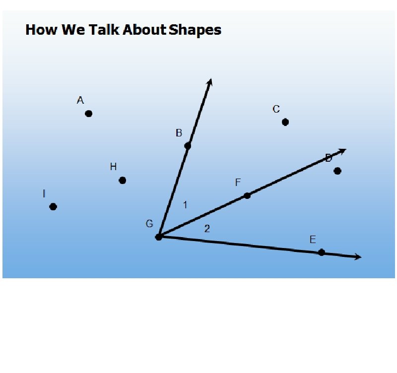 LEARNING OBJECTIVE: Students will recognize and name Points, Lines, Triangles. egments, Rays, Angles and