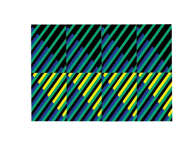 Now for our second Simultaneous Contrast Exercise… Principle 2: SUBTRACTION: A strong or dominant color will subtract its dominant hue from a smaller or less dominant color For Example: In the next image the orange middle groun is factually the same hue, but appears quite different on the different grounds. Each ground SUBTRACTS hues from the band.