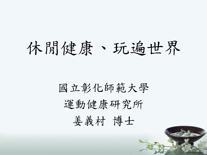 Thank you Any feedback? 運動健康研究所 或 體育室 姜義村 老師 dr. johnchiang@gmail. com http: //blog. yam. com/tr 1314/