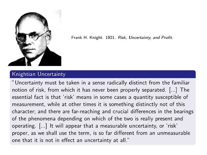 Sven Ove Hansson From the casino to the jungle: Dealing with uncertainty in technological risk management Synthese (2009) 168: 423– 432 For a clear example of a decision under uncertainty, consider instead the decision of an explorer whether to enter a distant part of the jungle, previously untrod by human foot. There are tigers and poisonous snakes in the jungle, but no estimates better than guesses can be given of the probability of being attacked by them. Such attacks are known dangers with unknown probabilities. In addition, it is reasonable to expect that the jungle contains unknown species—perhaps insects and microorganisms—some of which may be dangerous. Not only the probabilities but the very nature and existence of these dangers is unknown. For good or bad, life is usually more like an expedition into an unknown jungle than a visit to the casino. [. . ] In other words, typical real-life situations are characterized by uncertainty that does not, primarily, come with exact probabilities. (p. 426)