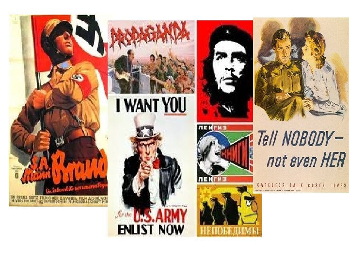 Propaganda • The manipulation and control of language and images • Used to spread a belief, idea, or view (political, religious, social, etc. ) by publicity • Essential to totalitarian regimes, but part of every government