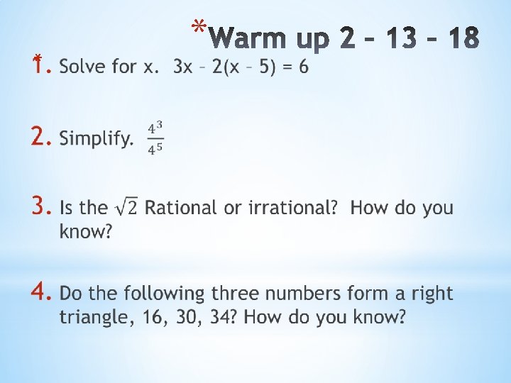 Learning Target: I CAN use the Pythagorean Theorem to solve word problems. - draw a picture - fill in the information given - solve for the missing side - answer the question in context