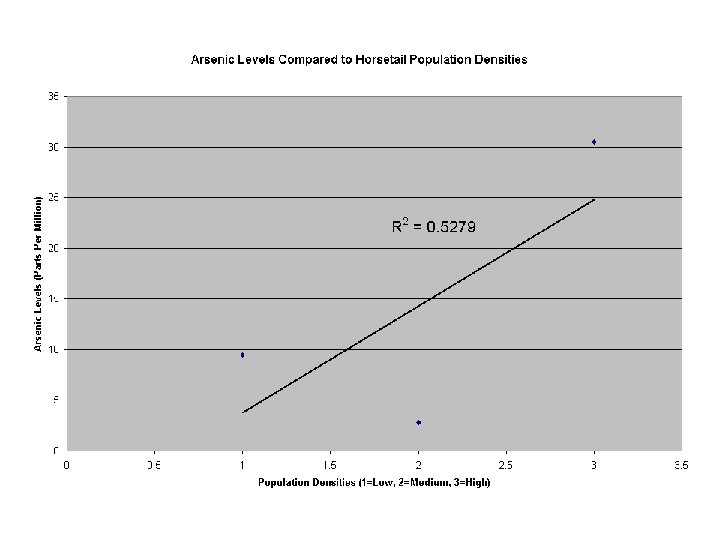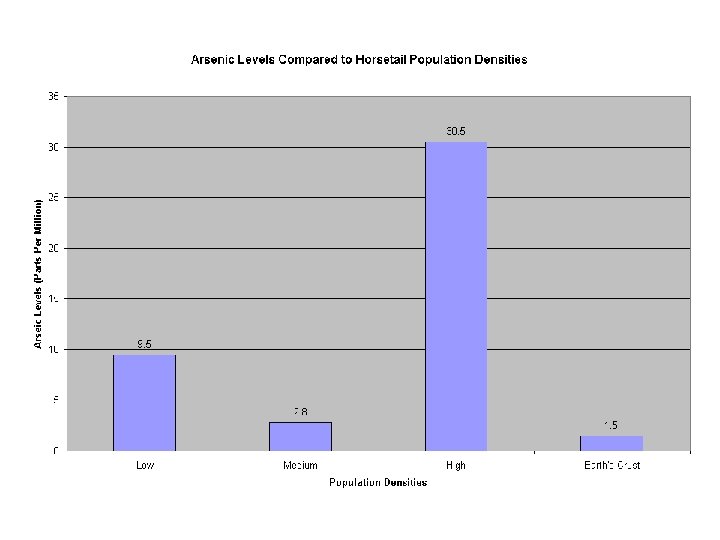 • Soil with high levels of Arsenic have higher population densities of Horsetail. • Horsetail needs a higher level of arsenic in the soil to survive (when compared to Earth’s crust average).