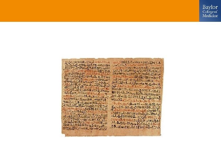 History Edwin Smith Surgical Papyrus • Edwin Smith, pioneer Egyptologist, purchased the papyrus which bears his name at Luxor in 1862. The original text was written about 3000 B. C. • It is the oldest known surgical (and scientific) treatise. 47 different cases of injuries and affections of the head, nose and mouth, together with methods of bandaging. • Ref: Zimmerman & Veith's "Great ideas in the history of surgery" (1967; pp 3 -13).