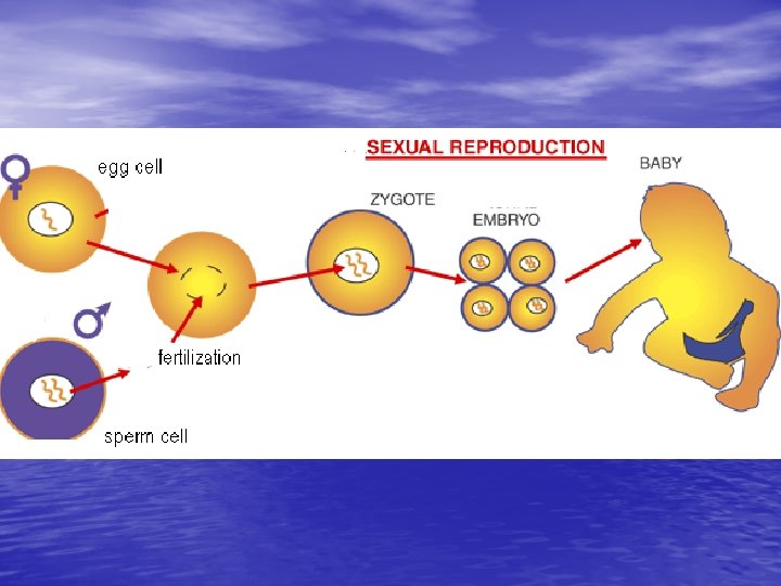 Sexual Reproduction • Sexual reproduction • relies on the union of sex cells called gametes Offspring of the parents will have mixed characteristics