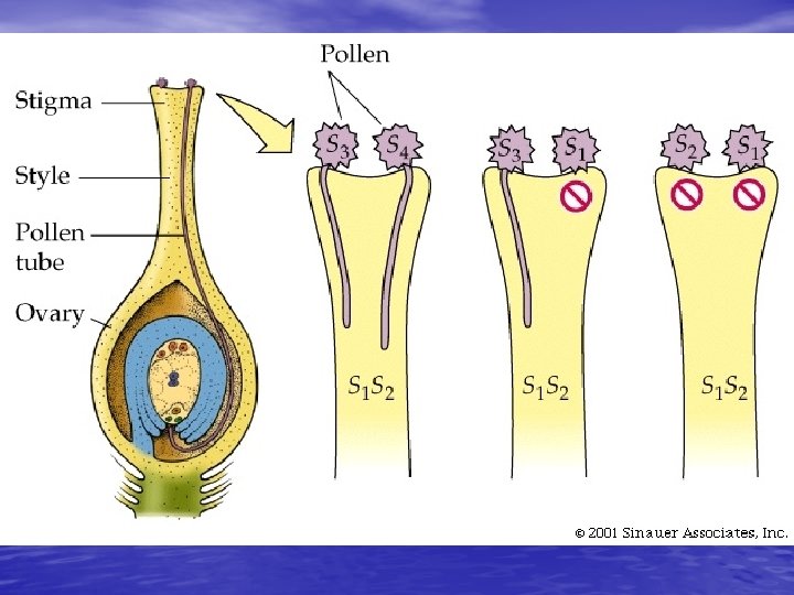 Strategies to avoid selfpollination • Perfect flowers have both male and female organs, so plants have strategies to avoid self -pollination: • 1. Timing – male and female structures mature at different times • 2. Structure –male and female organs prevent self-pollination (imperfect flower) • 3. Biochemical – chemical on surface of pollen and stigma that stops the pollen tube from being formed in the same flower