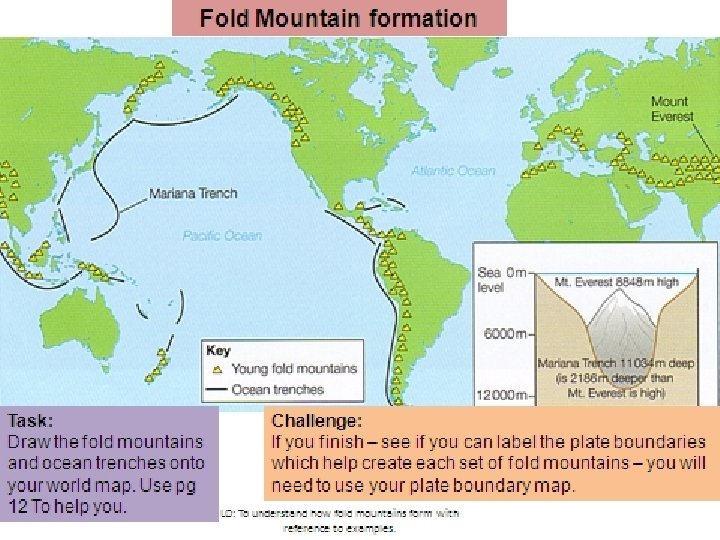 What landforms are found at different plate boundaries? Fold mountains and Ocean Trenches AQA Geography Year 10